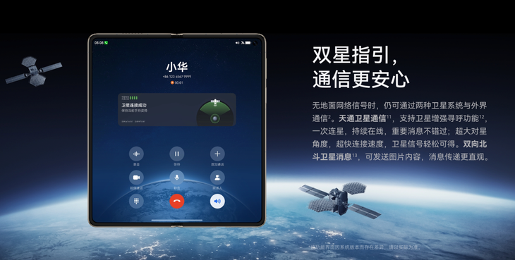 其中,天通衛(wèi)星通信可接打電話和收發(fā)消息,雙向北斗衛(wèi)星消息支持發(fā)送攜帶地理位置信息的文字和圖片信息。不僅如此,華為Mate X6的衛(wèi)星通信功能,還具備出色的可靠性和穩(wěn)定性——單次連星即可持續(xù)在線,避免用戶錯(cuò)過重要信息;對星角度高達(dá)120度,抬手即可對準(zhǔn);最快9秒連接衛(wèi)星,開啟了衛(wèi)星通信連接速度“個(gè)位數(shù)”時(shí)代。而低軌衛(wèi)星上網(wǎng)則為未來的通信技術(shù)埋下重要伏筆。具備雙網(wǎng)衛(wèi)星通信能力的華為Mate X6,不僅讓馬杜羅總統(tǒng)在偏遠(yuǎn)地區(qū)調(diào)研時(shí)保持通訊暢通,也為普通用戶進(jìn)行探險(xiǎn)、科研等活動時(shí)提供安全保障。