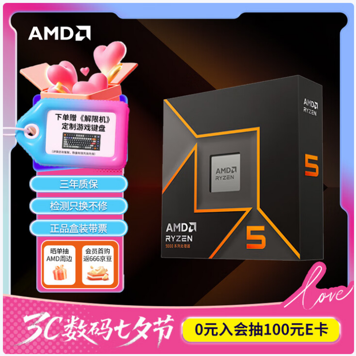 暑期攢機最后時機!AMD 銳龍5 9600X京東數(shù)碼七夕節(jié)好價