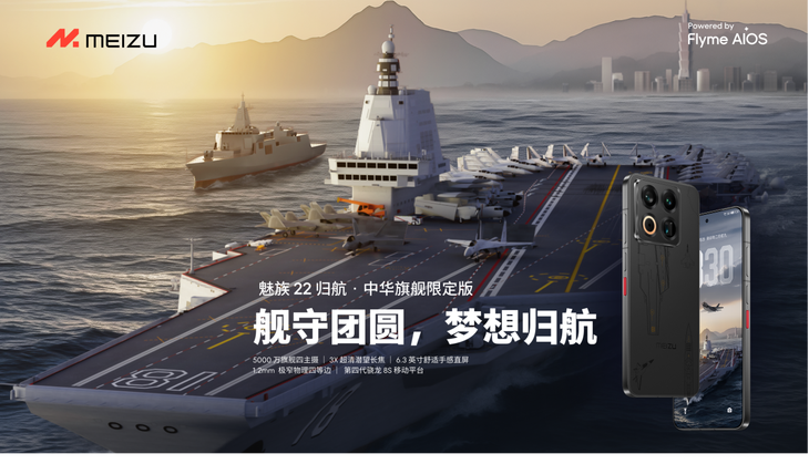 為致敬海疆衛(wèi)士,也致敬每一位守護歸航的奮斗者,魅族與中船推出「魅族 22 歸航·中華旗艦限定版」,包含專屬 UI 、金屬油墨工藝手機殼、艦載機主題配件與紀念牌,該禮盒為16 GB + 512 GB 配置版本,售價 4199 元,9 月底開啟預(yù)約,10 月 15 日前陸續(xù)發(fā)貨。