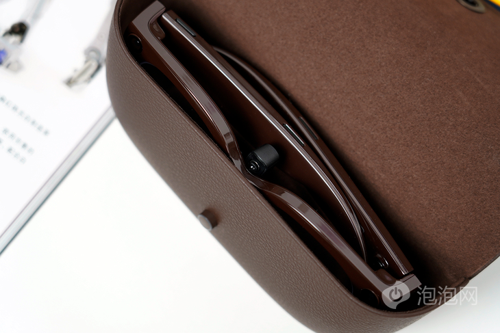 首先來看一下外觀方面,?戰(zhàn)者天禧智能體眼鏡G1標(biāo)配了一款仿皮眼鏡盒,不僅可以對(duì)眼鏡起到保護(hù)效果,而且也是眼鏡的充電盒,將眼鏡收納在眼鏡盒中即可為眼鏡充電,充電盒可通過底部接口進(jìn)行補(bǔ)電。