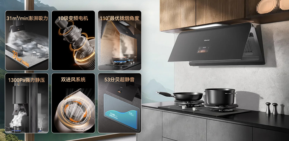 對于很多家庭來說,廚房是使用頻率最高、也最容易顯舊的區(qū)域。尤其是老房子,傳統油煙機常年運轉后吸力衰減、噪音變大、內部油垢堆積,清洗困難不說,排煙效果也大打折扣。每到做飯時分,油煙彌漫、機器轟鳴,下廚成了一場忍耐戰(zhàn)。更讓人頭疼的是,油污不斷附著在墻面、櫥柜、灶臺,日積月累,清理難度翻倍,也影響整個家的美觀與舒適。