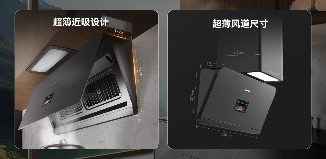 傳統老煙機多數體型笨重,占用空間多,容易造成壓抑感。海信“智魔方”S2Ultra采用超薄近吸設計,頂部17公分、最薄僅4公分,較傳統側吸式煙機節(jié)省70%的廚房空間。機身簡約輕盈,視覺上更通透,也能避免碰頭,尤其適合面積有限的老廚房。同時,海信“智魔方”S2Ultra采用超薄風道尺寸,32公分深度設計,無論是嵌進櫥柜里做成 “隱形設計”,還是直接掛在墻上,都不會顯得突兀,小戶型廚房也能輕松容納。不管是給老廚房做設備升級,讓小空間變寬敞;還是改造開放式廚房,需要兼顧顏值與實用,這臺煙機都能完美適配