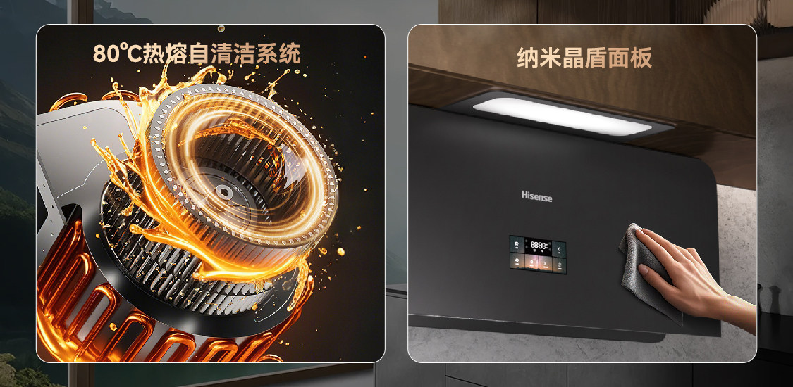 海信“智魔方”S2Ultra配備80℃高溫抑菌自清潔功能,用戶只需一鍵啟動,就能完成深層清理,杜絕油垢堆積和細菌滋生。外表選用AG膚感玻璃與納米涂層,油污一擦即凈;集煙腔一體成型無接縫,避免藏污納垢。搭配大容量油杯,減少倒油頻率,真正實現“長久如新”,再也不是“用一年,臟三年”。