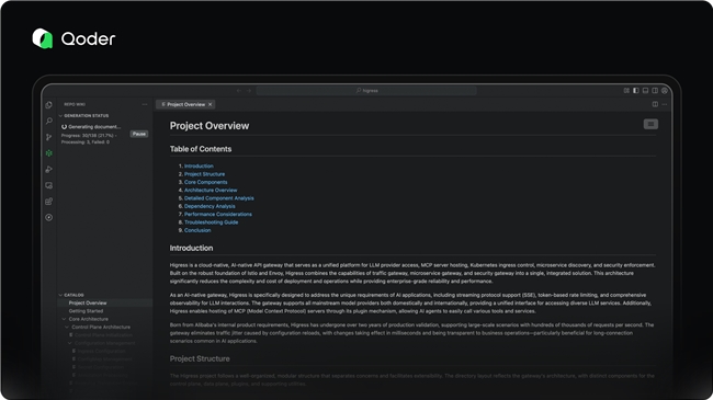 除了降價和支持支付寶付款外,Qoder 在近期也升級了核心能力。以 Repo Wiki 為例,該功能一經(jīng)上線就受到開發(fā)者的熱烈響應(yīng)。Repo Wiki 能基于代碼自動為項目生成結(jié)構(gòu)化的文檔知識庫,讓隱藏在代碼中的經(jīng)驗性知識,變?yōu)閳F隊可共享的顯性知識,目前 Repo Wiki 支持共享、編輯和導出,方便團隊把經(jīng)驗沉淀為可復用的工程資產(chǎn)。