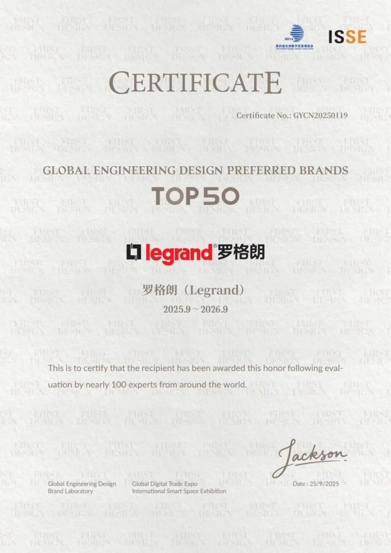 本次展會(huì)重點(diǎn)展示的羅格朗 KNX 智能建筑控制系統(tǒng),采用 KNX 國(guó)際標(biāo)準(zhǔn)通訊協(xié)議,具備卓越的兼容性與穩(wěn)定性,可無(wú)縫對(duì)接市面上各類 KNX 產(chǎn)品。憑借完整可靠的KNX智能控制系統(tǒng)解決方案,9月25日下午,羅格朗榮獲全球工程設(shè)計(jì)優(yōu)選品牌TOP50榮譽(yù)證書(shū),展現(xiàn)了百年電氣品牌的綜合實(shí)力。
