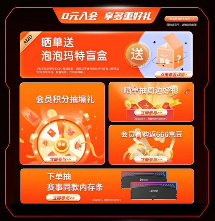對于準(zhǔn)備購買AMD 銳龍7 9800X3D處理器和AMD 銳龍5 9600X處理器的玩家們請先關(guān)注一下AMD京東自營旗艦店,成為京東旗艦店會員有0元入會抽100元E卡,首購返666京豆和曬單抽AMD周邊等活動。下面就來簡單介紹下這兩款最為熱賣的銳龍9000處理器。
