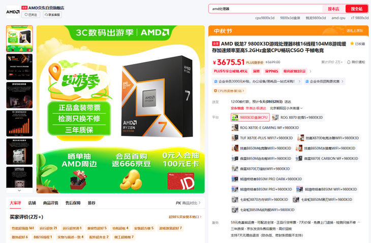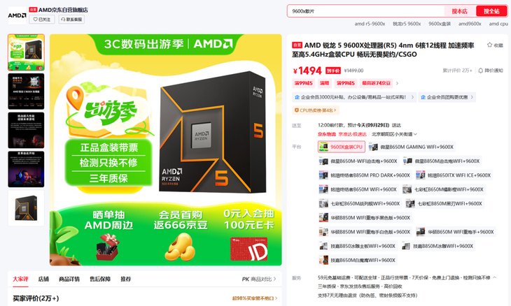 今天推薦的這兩款A(yù)MD 銳龍9000處理器都非常適合3A大作和競技網(wǎng)游,DIY玩家們在選購?fù)晏幚砥骱罂梢愿鶕?jù)的自己的需要在AMD京東商城自營旗艦店繼續(xù)選購其它配件,讓您擁有一站式購齊的體驗(yàn)??偟膩碚f,AMD 銳龍9000系列處理器就是大家黃金周攢機(jī)煥新最適合的產(chǎn)品,目前3C數(shù)碼出游季的優(yōu)惠力度都非常值得大家下單,預(yù)祝玩家們擁有一個愉快的的黃金周假期。
