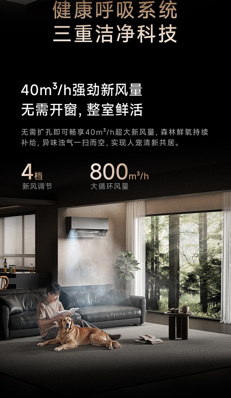 考慮到用戶對(duì)健康生活的需求,追覓機(jī)械臂空調(diào)同時(shí)采用強(qiáng)勁新風(fēng)煥新系統(tǒng),40m3/h新風(fēng)量配合H13級(jí)HEPA濾網(wǎng),即便在緊閉門窗的情況下,也能讓用戶擁有健康清新空氣。