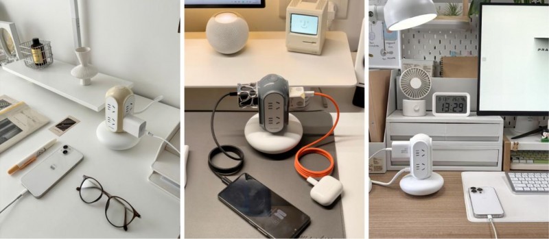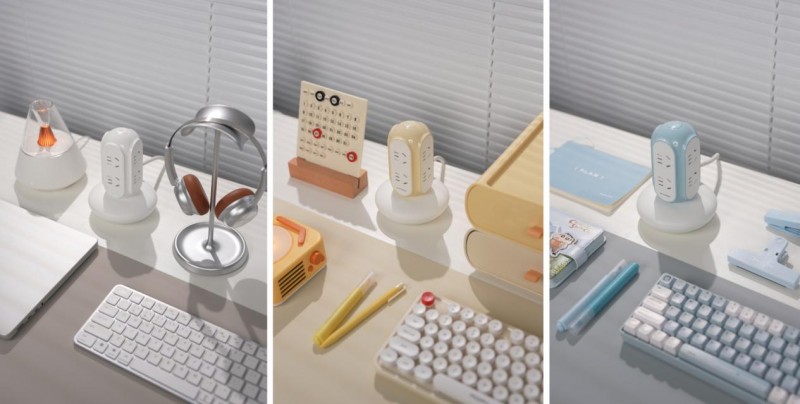 蘑菇造型:圓潤曲線與低重心弧形底座弱化工業(yè)感,提供多種潮流色系,適配北歐、日式、輕奢等多種裝修風格,讓插排從“工具”升級為“桌面裝飾品”。