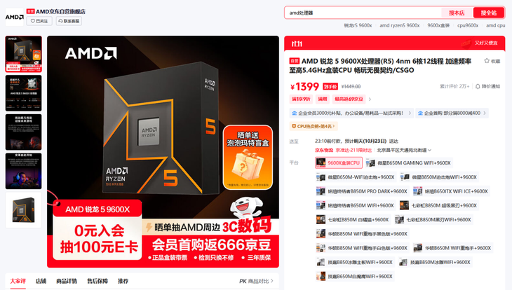 AMD京東自營旗艦店11.11品牌綜合活動鏈接: