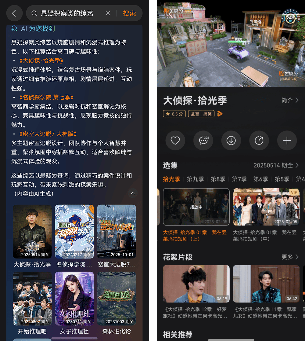 “AI搜”的推出正是對這一需求的積極響應(yīng)。該功能通過對海量影視內(nèi)容的深度理解,實現(xiàn)了從“人找內(nèi)容”到“內(nèi)容懂人”的轉(zhuǎn)變,讓用戶在豐富的內(nèi)容庫中能夠快速發(fā)現(xiàn)符合個人偏好的優(yōu)質(zhì)影視作品。
