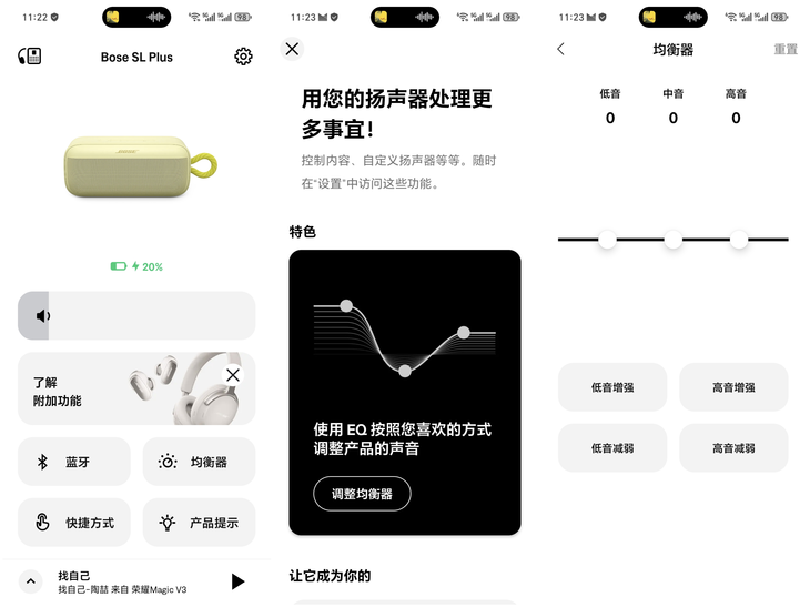 用戶還可以通過 Bose APP 中的“動(dòng)態(tài)音質(zhì)均衡器”自由調(diào)節(jié)低音、中音和高音,根據(jù)個(gè)人喜好或不同音樂類型打造專屬的聽覺體驗(yàn)。無論是露營(yíng)時(shí)想聽一曲溫暖的民謠,還是在湖邊派對(duì)上播放節(jié)奏感強(qiáng)烈的電子樂,都能輕松調(diào)校出最合適的音色。