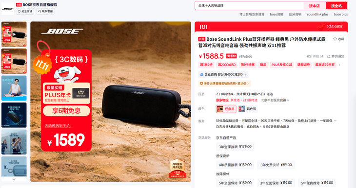 雙十一期間,Bose SoundLink Plus在Bose京東自營(yíng)旗艦店到手價(jià)僅1588.5元,還價(jià)格更香,想要入手的用戶不要錯(cuò)過。