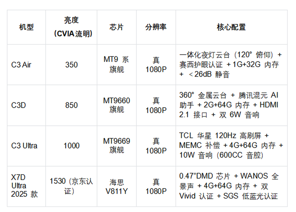? 畫質(zhì)校準(zhǔn):自研動(dòng)態(tài)校準(zhǔn)系統(tǒng),梯形校正精度達(dá) 0.2°,通過像素級畫質(zhì)檢測與 ±20° 側(cè)投壓力測試,解決行業(yè) “側(cè)投虛焦” 痛點(diǎn)(C2 Ultra 售后返修率遠(yuǎn)低于行業(yè)均值)。