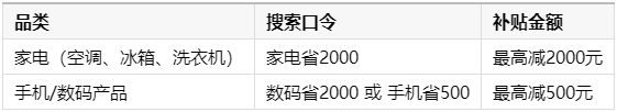 不同品類國(guó)補(bǔ)對(duì)應(yīng)專屬搜索口令,按需查找即可快速申領(lǐng):