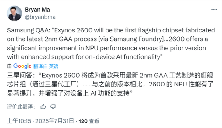 一雪前恥?三星Exynos 2600跑分創(chuàng)新高 全球首款2nm芯片
