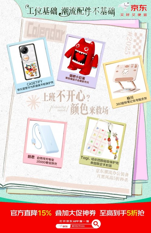 每天在工位上埋頭苦干,堆積如山的工作與無形的壓力如影隨形。而這時,一件充滿設計感的潮流配件,就像生活里的小確幸,能瞬間治愈疲憊的心情。CASETiFY快樂露營華為折疊屏手機殼,將戶外閑趣帶到指尖,每一次拿起手機都能成為放松。Tagi塔皮團圓磁吸殼+泰國限定手機鏈,異域風情為手機增添一抹別樣色彩;唱吧小巨蛋魔鬼貓藍牙麥克風,空閑時間隨時能開啟一場迷你演唱會,釋放工作壓力;極川360°旋轉筆記本電腦支架,靈活調(diào)節(jié)屏幕角度,頸椎和視角都更自由;倍思20000毫安充電寶自帶充電線,告別線材雜亂,輕松“滿電”出門。