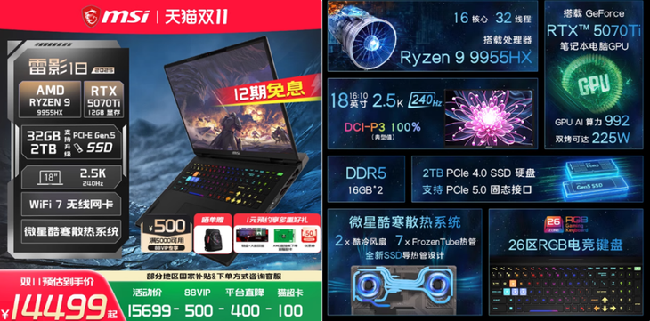 微星筆記本雙11選購攻略:神影泰坦爆款好價+曬單活動好禮等你拿