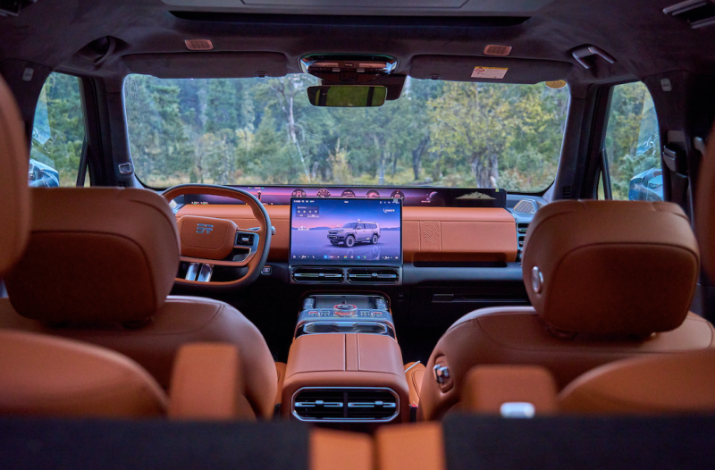 素有雪域江南的美景中,穿插著雪山、森林、湖泊、峽谷等復(fù)雜地貌??v橫 G700 鯤鵬超能混動 CDM-O 系統(tǒng)直面挑戰(zhàn),即便是海拔超 5000 米的埡口,665kW 最大功率與 1135N?m 最大扭矩,突破高原動力衰減瓶頸,加之4.6秒的零百加速度,即便是埡口爬坡也不滯澀,讓超車果斷利落。配合三把電控差速鎖與全地形反饋系統(tǒng),車輪不打滑、不陷車,穩(wěn)穩(wěn)征服每一段高原征途。硬派之上,G700更是在豪華舒適上貢獻(xiàn)了高原經(jīng)驗值。