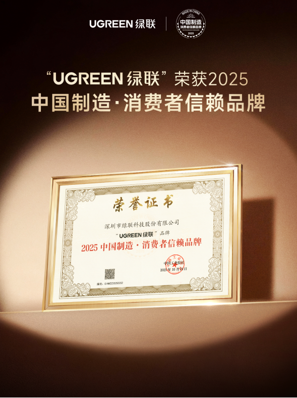 綠聯(lián)科技榮獲 “2025 中國制造?消費者信賴品牌”:以用戶為核心,讓信賴有溫度