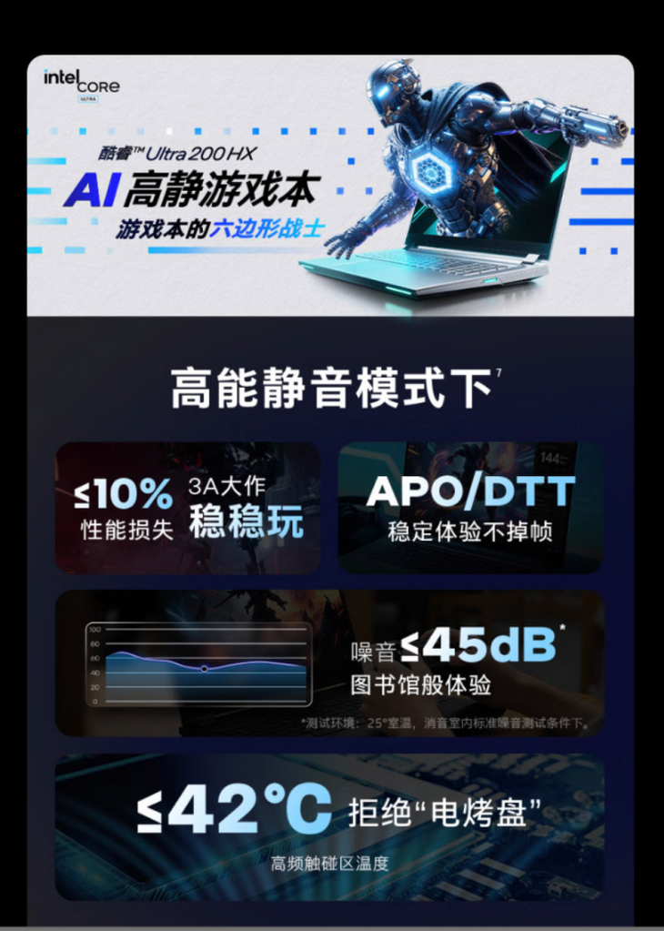 在運(yùn)行大型 3A 游戲時(shí),這臺(tái)搭載 Ultra7 255HX 的機(jī)型表現(xiàn)同樣亮眼?!逗谏裨挘何蚩铡烽_(kāi)啟高畫質(zhì) + DLSS 平衡模式,并搭配英偉達(dá) “幀生成” 技術(shù),Ultra7 255HX 能精準(zhǔn)調(diào)度算力,讓游戲平均幀率穩(wěn)定在幀100上下,BOSS 戰(zhàn)每一個(gè)動(dòng)作都絲滑不卡頓,此時(shí)風(fēng)扇噪音僅 48 分貝,相比我的老筆記本,安靜了許多。