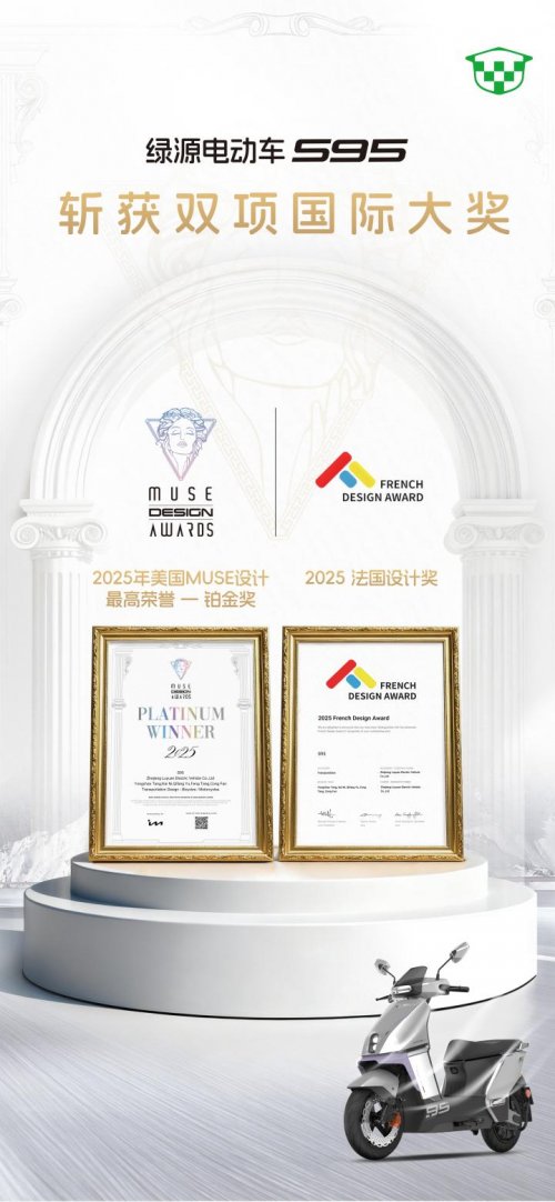近日,綠源S95在2025年接連斬獲兩項(xiàng)國(guó)際設(shè)計(jì)大獎(jiǎng)——MUSE設(shè)計(jì)獎(jiǎng)最高榮譽(yù)“鉑金獎(jiǎng)”與法國(guó)設(shè)計(jì)獎(jiǎng),成為中國(guó)電動(dòng)兩輪車領(lǐng)域罕有的“設(shè)計(jì)雙冠”車型。MUSE設(shè)計(jì)獎(jiǎng)以其嚴(yán)苛的評(píng)審體系與不足5%的鉑金獲獎(jiǎng)率被譽(yù)為“設(shè)計(jì)界奧斯卡”;法國(guó)設(shè)計(jì)獎(jiǎng)則憑借其歐洲設(shè)計(jì)界的權(quán)威視野與對(duì)創(chuàng)新品質(zhì)的極致追求享譽(yù)全球。此次雙獎(jiǎng)共獲,不僅是對(duì)綠源產(chǎn)品設(shè)計(jì)水平的極高認(rèn)可,更標(biāo)志著中國(guó)企業(yè)在工業(yè)設(shè)計(jì)與產(chǎn)品綜合品質(zhì)領(lǐng)域再次獲得國(guó)際市場(chǎng)的高度肯定。