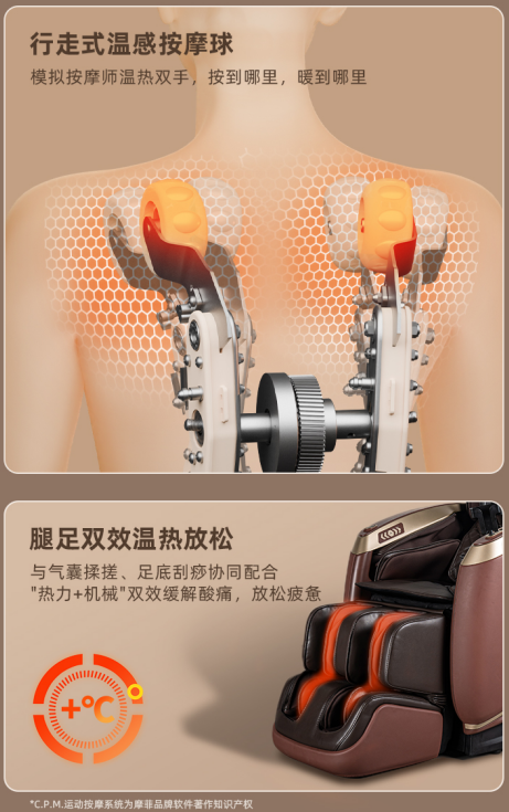 針對(duì)冬季氣溫低、肌肉易緊張、血液循環(huán)減緩的特點(diǎn),摩菲按摩椅MC70非凡椅配備了多維溫感系統(tǒng)。其行走式溫感按摩球可實(shí)現(xiàn)"按摩+熱敷"同步進(jìn)行,42-45℃的精準(zhǔn)溫控范圍能夠有效促進(jìn)深層循環(huán)。腿足部位的雙效溫?zé)嵯到y(tǒng)特別適合應(yīng)對(duì)冬季手腳冰涼問(wèn)題,配合全身熱敷功能,為使用者構(gòu)建完整的冬季保暖理療方案。