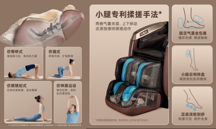 對(duì)于堅(jiān)持冬季鍛煉的人群,摩菲按摩椅MC70非凡椅的C.P.M運(yùn)動(dòng)按摩系統(tǒng)3.0提供了專業(yè)級(jí)的恢復(fù)支持。其專利小腿揉搓技術(shù)(專利號(hào):ZL201921873558.5)通過(guò)氣囊?jiàn)A緊與上下移動(dòng),有效緩解冬季因運(yùn)動(dòng)減少導(dǎo)致的腿部循環(huán)不暢問(wèn)題。普拉提式拉伸功能通過(guò)機(jī)芯與氣囊聯(lián)動(dòng),模擬多種專業(yè)運(yùn)動(dòng)體態(tài),幫助使用者在冬季保持肌肉活力與關(guān)節(jié)靈活性。