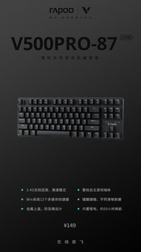 劉明鵬 · 2021-06-01 20:36 - 無(wú)線放飛 雷柏V500PRO-87無(wú)線版游戲機(jī)械鍵盤上市