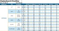 ????泡泡網(wǎng)液晶顯示器頻道8月2日?轉(zhuǎn)眼間已經(jīng)到了8月份,這也是往年液晶的銷售旺季。同時(shí)我們從DisplaySearch面板報(bào)價(jià)平臺(tái)了解到,從今年4月份以來(lái)面板報(bào)價(jià)一直呈現(xiàn)降勢(shì),從這一點(diǎn)也能大致分析出各個(gè)顯示器品牌的銷售壓力。如今面板制造商更愿意保持價(jià)格平緩,而品牌運(yùn)營(yíng)商和OEM代工廠則繼續(xù)要求面板價(jià)格下調(diào)。 ??? 我們看到,液晶顯示器面板從17到21.5吋的最走量尺寸面板價(jià)格已經(jīng)降價(jià)4