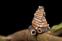 ????新加坡攝影師Nicky Bay 擅長以微距鏡頭拍攝有趣的生態(tài)照片,例如之前介紹過的蜘蛛影像就相當(dāng)漂亮,而今次則是較另類的作品,因?yàn)樗臄z的不是小動(dòng)物本身,而是它們所制作的“迷你建筑”、一份源于大自然的匠心。例如上圖疊起來的木塔 (?),事實(shí)是保護(hù)幼蟲 / 蛾蛹的結(jié)構(gòu),近乎完美的對稱,每邊長度闊度幾乎相同,巧妙得令人驚訝。Bagworm moth larvae 蓑蛾科的幼蟲????除此之外,