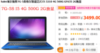 - 標(biāo)壓i5配GT 635M獨顯 海爾7G僅3499元