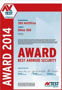 ??? 2月5日,距離中國農(nóng)歷春節(jié)還有十多天,全球頂級安全軟件權(quán)威認證機構(gòu)AV-TEST通知360手機衛(wèi)士榮獲2014年全球最優(yōu)手機安全軟件大獎。360手機衛(wèi)士在2014年6次AV-TEST認證測試中均獲得全球第一的成績,這可以稱得上是以嚴謹著稱的德國人送給中國人一份大禮:獲此殊榮的在全球眾多評測產(chǎn)品中,僅有來自中國的手機安全軟件。圖一:360手機衛(wèi)士榮獲AV-TEST 2014年度全年最優(yōu)手機安