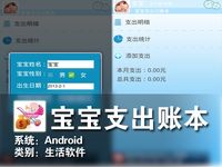 ????泡泡網(wǎng)手機(jī)頻道2月21日?寶寶的花銷之大相比每位為人父母的網(wǎng)友都感覺。不知不覺中就花除了不少錢財(cái)。今天小編就給各位為人父母的朋友介紹一款軟件,用該軟件記錄關(guān)于寶寶的一切花銷。到底軟件怎樣呢,一起來看看吧! 推薦應(yīng)用 寶寶支出記賬本 售價(jià):免費(fèi) 大?。?99KB 下載地址 軟件整體呈藍(lán)色調(diào),首先用戶要設(shè)置關(guān)于寶寶的一些出生日期,之后就能進(jìn)入軟件的正文。遺憾的是該軟件有