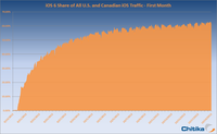 ????泡泡網(wǎng)手機(jī)頻道10月23日?根據(jù)Chitika提供的消息,自蘋果在9月19日正式推出iOS6操作系統(tǒng)至今,在北美已經(jīng)有超過60%%的用戶升級到了iOS6系統(tǒng),這個比例在系統(tǒng)升級方面是非常高的,要遠(yuǎn)遠(yuǎn)領(lǐng)先于Android4.1系統(tǒng)的升級比例。 ??? 從iOS5系統(tǒng)開始,用戶就可以在設(shè)備上直接通過OTA功能進(jìn)行系統(tǒng)升級,大大簡化了蘋果設(shè)備的升級步驟,這也促進(jìn)了iOS6系統(tǒng)的升級比例。