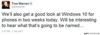 ????泡泡網(wǎng)手機頻道1月8日 微軟可能希望在Windows 10到來前將移動產(chǎn)品放在次要位置,同時消化一下Lumia品牌庫存,但這可能導(dǎo)致它搬起石頭砸自己的腳,因為我們也不確定Windows 10將會在什么時候到來。????不過據(jù)目前的情況來看,這一天應(yīng)該不會遠了。因為Tom Warren在Twitter上爆料稱,微軟將會在兩周之后介紹它們關(guān)于Lumia手機和系統(tǒng)的新進展。????微軟發(fā)出邀請函