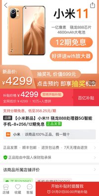 12月29日消息,日前小米公司正式發(fā)布了年度旗艦手機(jī)新品小米11,產(chǎn)品以高性價(jià)比贏得了大量消費(fèi)者的關(guān)注。目前,這款新品已登陸拼多多百億補(bǔ)貼頻道,根據(jù)頁面顯示的信息,“想拼”的用戶在發(fā)布會(huì)后數(shù)小時(shí)內(nèi)就達(dá)到了“10萬+”