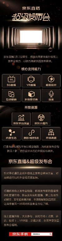 ? 每年二三月份原本是手機廠商春節(jié)后第一輪發(fā)布會的重要時間節(jié)點,為了克服難關(guān),各大手機廠商不得不將新品發(fā)布會搬到線上。與此同時,如何通過線上完成新品入市的營銷計劃也成了各大廠商的難題,一直與商家同頻共振的京東率先給出了解決方案。2月12日,京東手機聯(lián)合京東直播推出線上 " 超級發(fā)布會 ",以 5G 直播、VR 直播、超低延時、互動營銷、多場景切換等核心技術(shù)支持,加以京東平臺、微信小程序、市場渠道等站內(nèi)外全域資源加持以及更低的營銷成本,助力商家新品發(fā)布需求。