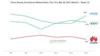 最近,市場(chǎng)研究公司Counterpoint Research 昨日發(fā)布了最新的中國(guó)手機(jī)市場(chǎng)研究報(bào)告。數(shù)據(jù)顯示,在2021年的第11周(3月8日至14日),vivo在中國(guó)的市場(chǎng)份額達(dá)到24%%,第二名的OPPO以21%%的份額緊隨其后,第三的華為則是15%%。