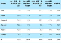 緊接著是vivo,其在2021年Q1出貨量同比增長(zhǎng)了85%%。
