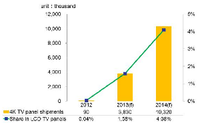 侯維鋮 · 2013-01-18 08:45 - 預(yù)計2014年4K面板出貨量將達到千萬片