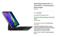 4月8日消息,根據(jù)亞馬遜頁面顯示,新款iPad Pro秒控鍵盤將會(huì)在5月30日發(fā)售,但這并不能代表會(huì)在當(dāng)天發(fā)布,因?yàn)榻?jīng)銷商往往會(huì)提前上架,當(dāng)做占位符,但蘋果官網(wǎng)已經(jīng)公示,會(huì)在5月發(fā)布,所以最晚也不過5月30日。