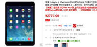 ??? [泡泡網(wǎng)平板電腦頻道] 如今最流行最好用的平板就是iPad mini2,這款輕薄小巧的驚艷之作的確非常有人氣。從細膩清晰的視網(wǎng)膜屏,到強大的A7芯片,輕薄小巧的體積可以隨身攜帶。今天給大家推薦16G內(nèi)存版iPad mini2灰色版在國美在線團購價2770元。 ??? iPad mini2 16G WiFi版 國美在線2770元[購買直達] ??? 7.9英寸Retina顯示屏,分辨