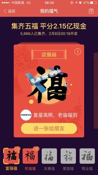 ????最近,大家是不是突然收到很多支付寶好友申請呢?原來是支付寶推出了一個“??ā被顒樱灰R五種“福”,就有能夠平分2億元現(xiàn)金紅包。 ????目前,官方數(shù)據(jù)顯示集齊人數(shù)剛剛超過6000人,如果只有這些人集齊的話,他們每人將獲得超過33000元人民幣的現(xiàn)金紅包! ????是不是感覺很有吸引力呢?不過很多網(wǎng)友發(fā)現(xiàn)第五種“?!薄⒁簿褪恰熬礃I(yè)?!背銎娴?/p>