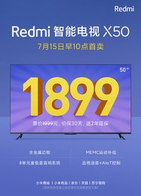 7月15日消息, Redmi 4K 全面屏電視 X50于今日正式開售,4K 屏幕分辨率,配備 2GB 內(nèi)存與 32GB 存儲(chǔ),零售價(jià) 1999 元,新品首銷可優(yōu)惠100元。