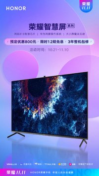 周一鳴 · 2019-11-08 16:36 - 榮耀智慧屏開啟預(yù)售!現(xiàn)在預(yù)定優(yōu)惠800元,還享三年整機(jī)包修