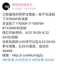 8月20日,聯(lián)想拯救者產(chǎn)品經(jīng)理在微博發(fā)布消息:聯(lián)想(Lenovo)拯救者R7000P 15.6英寸游戲筆記本電腦(R7-4800H 16G 512G SSD,已可在京東預(yù)約。