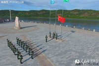 國(guó)旗班官兵正在整齊行進(jìn)?! ?月1日,駐守在祖國(guó)最北端的武警黑龍江省邊防總隊(duì)漠河邊防大隊(duì)利用小型無(wú)人機(jī)為“北極國(guó)旗班”臨退伍老兵航拍,讓臨退伍國(guó)旗班老兵留下精彩回憶?! 氨睒O國(guó)旗班”官兵平均年齡不滿20歲,今年將有10名老兵退伍回家,對(duì)于這些老兵來(lái)說(shuō),國(guó)旗班的生活是他們?nèi)胛樯淖钫滟F的回憶之一?! ∫患苄⌒蜔o(wú)人機(jī)正在對(duì)“北極國(guó)旗班”升國(guó)旗儀式進(jìn)行航拍。