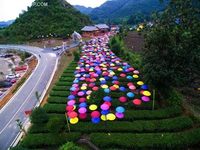中國(guó)最美鄉(xiāng)村——幸福七彩部落 湄潭有個(gè)地方叫七彩部落,地處湄江鎮(zhèn)金花村大青溝組。一棟棟漂亮整潔的房屋不是別墅,勝似別墅,錯(cuò)落有致展現(xiàn)在翠色欲流的茶園間。這樣一個(gè)“望得見山、看得見水、記得住鄉(xiāng)愁”的地方就像童話世界,云霧繚繞的彩色房屋就像人間仙境,絡(luò)繹不絕的游客和村民們的歡歌笑語(yǔ)令人流連忘返,仙女和蝴蝶飛上了農(nóng)家院墻。這樣一個(gè)如詩(shī)如畫的地方,村民們生活真幸福?! ‘a(chǎn)業(yè)結(jié)構(gòu)調(diào)整腰包鼓 金花村大青溝