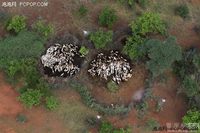 2015年9月8日消息,肯尼亞察沃保護(hù)區(qū),野生動(dòng)物航拍圖。一群非法放牧的山羊?! ∫恢缓玉R?! ∫蝗捍笙??! ∫蝗喊唏R在長(zhǎng)頸鹿附近。 一群大象?! ∫恢辉馔但C的大象。